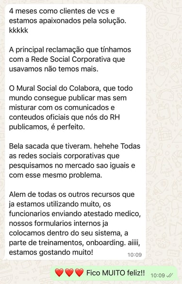 "Utilizamos o ColaboraApp desde 2021 e gostamos muito do produto e do atendimento. Mais de 12 mil funcionários acessam a plataforma para utilizar todos os recursos.